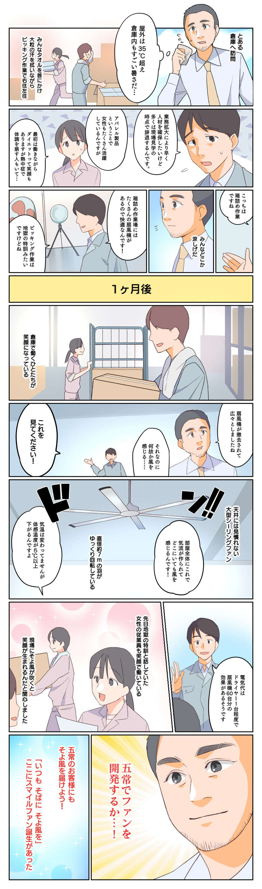 今後は別の倉庫にもこのスマイルファンの導入を検討しています。